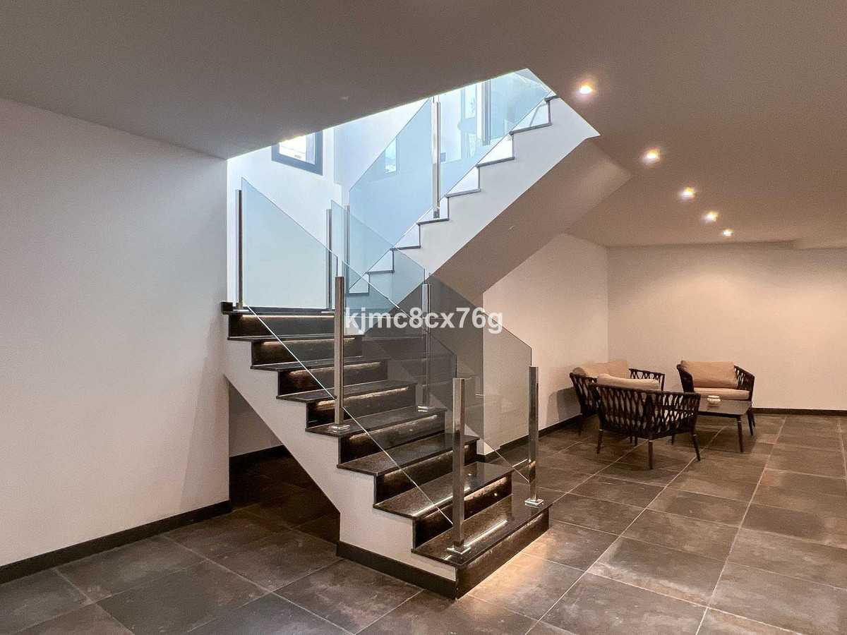 Wonderful, ultra-modern, newly built villa in the El Faro residential area, Mijas Costa, just 200 metres from the beach. Unparalleled luxury in the area. Spacious, bright, with uninterrupted sea views and plenty of privacy to delight even the most demanding client. The property consists of three levels connected by stairs and a lift, distributed as follows: main floor with large living-dining room opening onto a large terrace, gardens and swimming pool, as well as a barbecue area. Fully equipped kitchen with separate utility room, a guest toilet and two en-suite bedrooms, perfect for guests. First floor with two large en-suite bedrooms, study and another full bathroom. In addition, a terrace of over 100 m² with spectacular sea and mountain views. Finally, the large basement of over 250 m² houses a spacious car park for several vehicles, a machinery room and a huge area that could be used to create a guest apartment, cinema, wine cellar, games room or whatever the new owner desires.