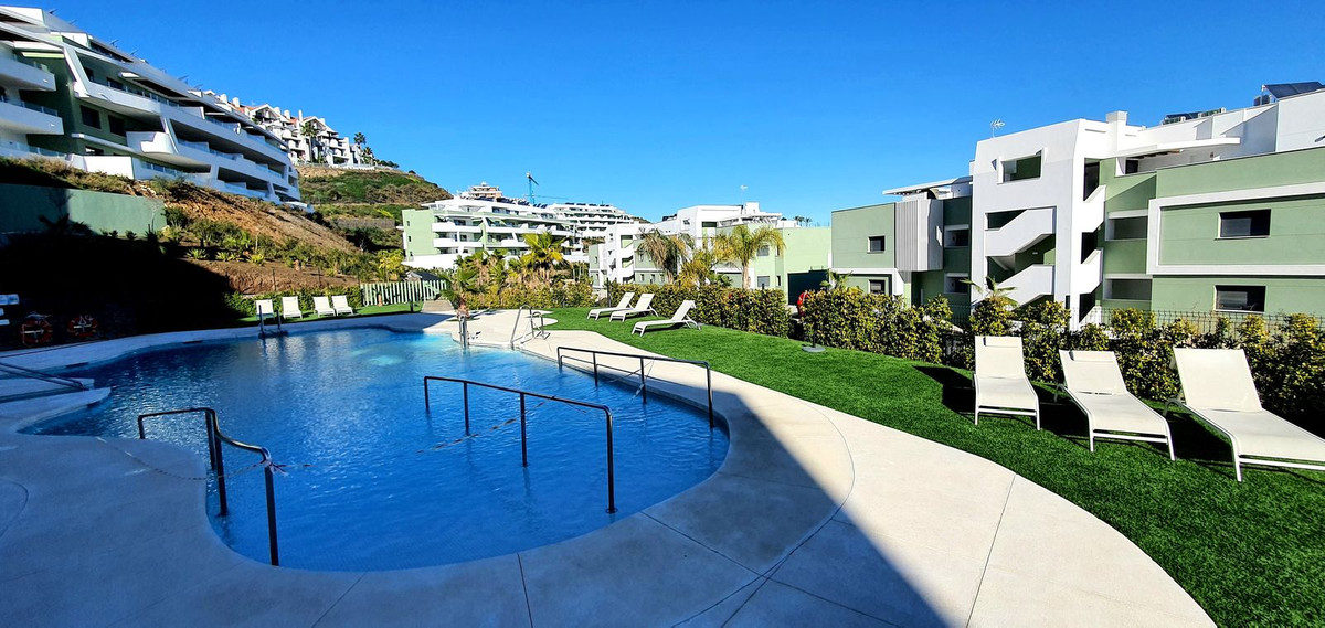 Dit lichte en moderne appartement weerspiegelt een perfecte balans tussen kwaliteit en eigentijds design, ontworpen door de gerenommeerde architecten González & Jacobson. Met een totale bebouwde oppervlakte van 114 m² en 97 m² bruikbare ruimte is de indeling uitzonderlijk goed geproportioneerd en biedt het overal royale ruimte. Doordachte opbergoplossingen en een royale garderobe zorgen voor een opgeruimde omgeving. (11 kasten van vloer tot plafond!) De open keuken en woonkamer creëren een prachtig gevoel van flow, interactie en energie en komen uit op een terras op het zuidwesten met prachtig uitzicht op zee. De ideale plek om met familie of vrienden te genieten van de zonsondergang tijdens een diner. De hoofdslaapkamer biedt ook uitzicht op zee, heeft voldoende kastruimte en een stijlvolle en-suite badkamer. Twee extra lichte en ruime tweepersoonsslaapkamers zijn voorzien van inbouwkasten en bieden uitzicht op het zwembad, de omliggende heuvels en de golfbaan. Een gastenbadkamer met bad/douche maakt de accommodatie compleet. Het appartement beschikt over een toeristenvergunning en de woning wordt verhuurd voor 3.500 euro per maand. Dat levert dus een goed huurinkomen op. Bewoners kunnen gebruikmaken van een breed scala aan eersteklas voorzieningen in deze beveiligde community, waaronder een buitenzwembad, een kinderzwembad, een volledig uitgeruste fitnessruimte, een spa met sauna en een verwarmd binnenzwembad. Op slechts 300 meter afstand ligt de prachtige Calanova Golf Club & Restaurant, een 18-holes par-72 baan met adembenemend uitzicht op zee vanaf elke hole. De locatie is ongeëvenaard: de luchthaven van Malaga ligt op slechts 30 minuten afstand, Marbella op 25 minuten en het levendige stadje La Cala de Mijas met zijn zandstranden op slechts 7 minuten van uw voordeur. Veiligheid en gemoedsrust staan voorop, met een conciërgeservice en bewakingscamera's in de hele wijk. Elk appartement beschikt bovendien over een eigen ondergrondse parkeerplaats. Bel vandaag nog voor een bezichtiging (Sleutels op kantoor)