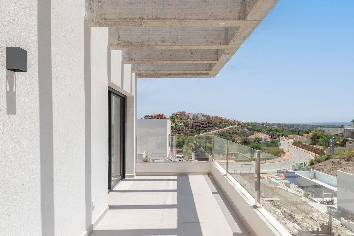 Luxe en exclusieve nieuwbouwvilla gelegen in Elviria, vlakbij de golfbaan Santa Mª. De woning is hoogwaardig en in moderne stijl gebouwd en biedt een prachtig open uitzicht op zee. De woning is verdeeld over twee verdiepingen plus de kelder en beschikt over een lift die alle verdiepingen met elkaar verbindt. Op de begane grond bevinden zich een slaapkamer met eigen badkamer, een lichte en ruime woonkamer, een open keuken die aansluit op de woonkamer en een groot terras met prachtig open uitzicht en toegang tot het zwembad en de tuin. Op de eerste verdieping vinden we nog eens drie slaapkamers, allemaal met een eigen badkamer, en toegang tot het grote solarium om van het beste uitzicht te genieten. In de kelder bevindt zich de garage met ruimte voor twee auto's en een extra slaapkamer die gebruikt kan worden als sportschool, bioscoop, etc.