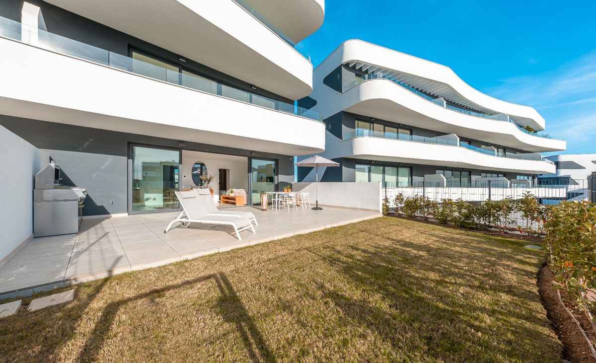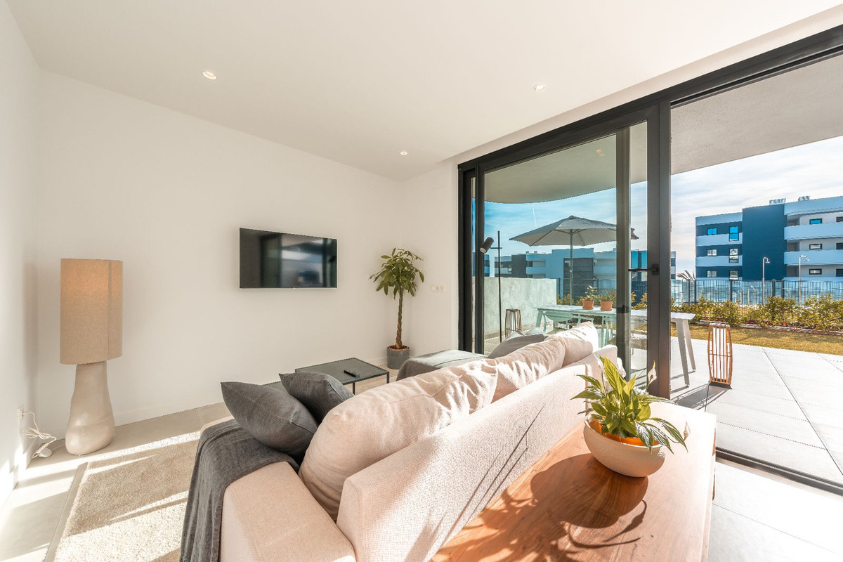 Welcome to this serene and stylish ground-floor apartment that captures the essence of contemporary Mediterranean living. This beautifully presented two-bedroom, two-bathroom home combines modern design with warm natural tones and abundant light, creating an inviting and relaxing atmosphere from the moment you enter. The open-plan living area connects effortlessly with the spacious west-facing terrace and private garden — together measuring nearly 50 m² — offering the perfect setting for al fresco dining, morning coffee, or relaxing in the sun while overlooking the pool and landscaped gardens. The orientation ensures warm natural light throughout the day and beautiful sunset colors in the evening. Inside, every detail has been thoughtfully designed for comfort and functionality. The fully equipped kitchen includes high-quality appliances such as an oven, fridge-freezer, dishwasher, coffee machine, and more. Both bedrooms are spacious and bright, and the two bathrooms feature sleek finishes and underfloor heating for added comfort year-round. The property offers a total built area of 74.55 m², complemented by a private garden of 45.18 m². Additional features include two private underground parking spaces, a storage room of 6.87 m², air conditioning, high-speed Wi-Fi, and a Smart TV. Located in a secure and well-maintained residential complex with multiple swimming pools and beautifully landscaped common areas, the apartment provides the ideal balance between privacy, comfort, and community living. Its location is highly convenient — just five minutes from the beach, and within easy reach of Málaga Airport, Fuengirola, and Marbella — offering quick access to all major amenities along the coast. The property holds a valid short-term rental license and has been rented out very successfully over the past two years, combining excellent investment potential with the ease of a turn-key holiday home. Offered for €479,000 (furniture optional for an additional €20,000 — BBQ excluded). A refined home that blends design, sunlight, and tranquility — the perfect place to enjoy life under the southern sun.