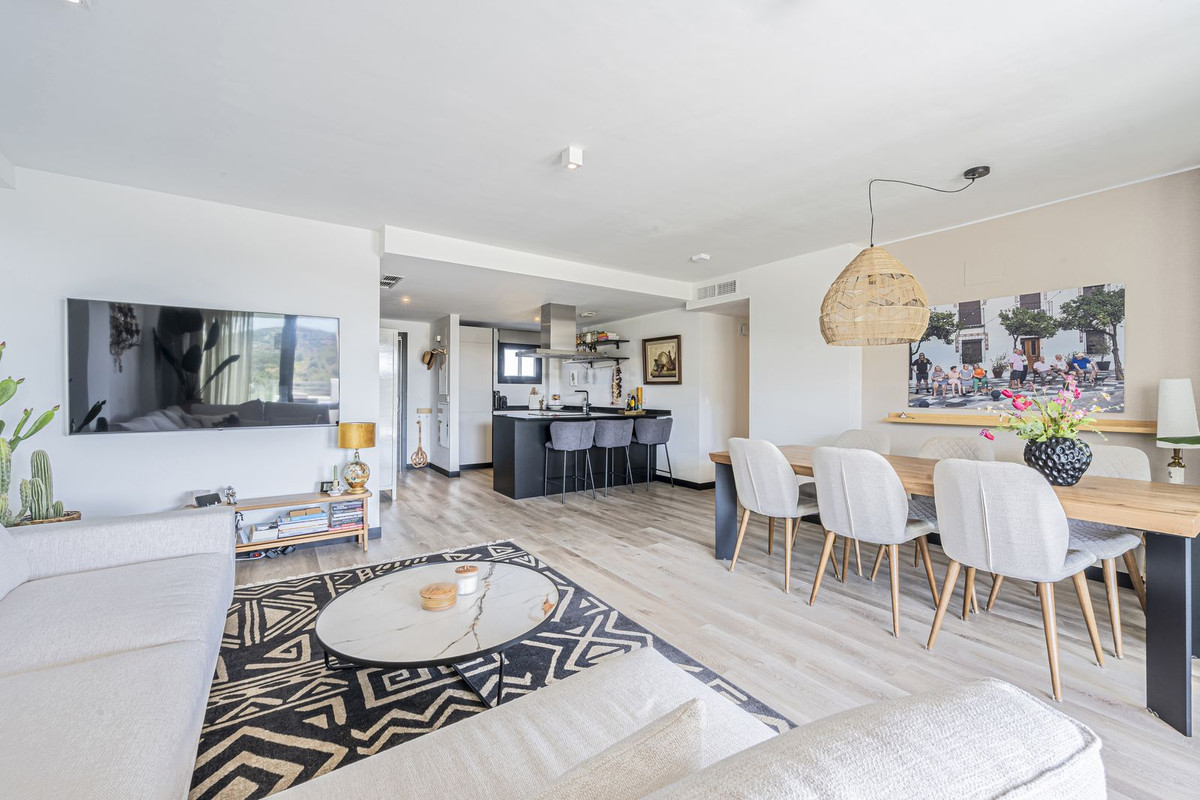 Luxe appartement met panoramisch uitzicht over de natuur en de zee met 4 slaapkamers. Droom je van een huis waar je elke dag wakker wordt met de zonsopgang boven de Middellandse Zee? Dit uitzonderlijke appartement maakt die droom werkelijkheid. Met zijn ruime indeling, hoogwaardige afwerking en spectaculaire, brede terras geniet je van ultieme rust en de echte mediterrane levensstijl. Gelegen in een exclusief complex met resortfaciliteiten, vindt u alles wat u nodig heeft direct voor de deur. Neem een verfrissende duik in het verwarmde zwembad, ontspan in de sauna, train in de fitnessruimte of geniet van een diner in het restaurant van het hotel. Zelfs de vakantiewoningen zijn binnen het complex al voor u geregeld, wat dit een ideale, zorgeloze investering maakt. Dankzij de rustige ligging en het gegarandeerde uitzicht op zee voelt elke dag als vakantie, terwijl Fuengirola en La Cala de Mijas op slechts 7 minuten afstand liggen. Met de luchthaven van Malaga op slechts 25 minuten rijden is dit appartement ook perfect bereikbaar. Indeling en kenmerken: -4 ruime slaapkamers -2 badkamers + 1 gastentoilet -In nieuwstaat -Groot, breed terras met panoramisch uitzicht op de bergen, de stad en de zee - Moderne keuken en lichte woonkamer -2 privéparkeerplaatsen -1 grote berging Het Complex: - Restaurant op locatie - Verwarmd zwembad -Sauna en fitnessruimte -Wasruimte -Kinderspeelplaats -Receptie -Vakantieverhuur volledig beheerd binnen het complex Of u nu op zoek bent naar een permanente woning, een tweede huis of een investering: dit appartement is instapklaar, hoogwaardig afgewerkt en u kunt het zorgeloos verhuren.