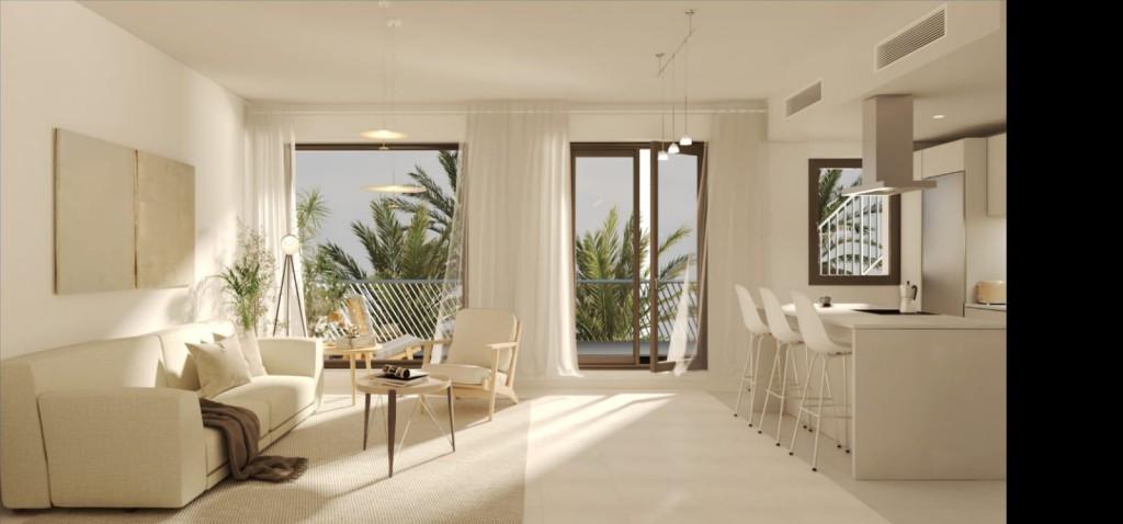 Setting: Close To Golf Pool: Communal Climate Control: Air Conditioning, Hot A/C Views: Sea, Mountain, Golf, Pool Features: Ensuite Bathroom Kitchen: Fully Fitted Garden: Communal Security: 24 Hour Security Parking: Garage Category: New Development |
