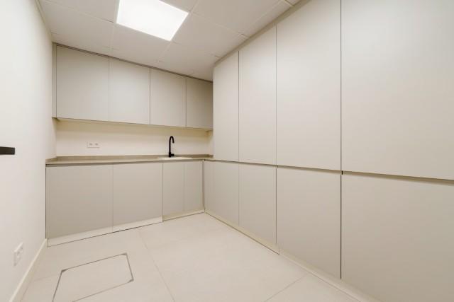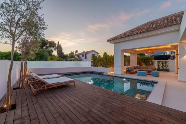Ervaar het hedendaagse leven aan de kust op zijn best in deze uitzonderlijke luxe villa met 5 slaapkamers te koop in San Pedro de Alcántara, een van Marbella's meest gewilde wijken aan het strand. Deze woning combineert strakke, moderne architectuur met verfijnde interieurs en voorzieningen in resortstijl en biedt verfijning, comfort en de ontspannen elegantie van de mediterrane levensstijl. Gelegen op een perceel van 612 m² met 446 m² bebouwde oppervlakte, is de villa omgeven door weelderig groen en omsloten door strak witte muren voor privacy. De zuidgerichte ligging baadt elke hoek in natuurlijk licht, terwijl het ontwerp het binnen- en buitenleven maximaliseert. Buiten nodigt een sprankelend privézwembad met een stijlvol houten terras en een ruim overdekt terras uit tot moeiteloos entertainment. Het dakterras biedt een verhoogde plek om te zonnebaden, cocktails te drinken bij zonsondergang of te ontspannen onder de sterrenhemel. Binnen is de sfeer licht en luchtig, met kamerhoge ramen, neutrale tinten en elegante inbouwverlichting die het gevoel van ruimte versterken. De open woon- en eetkamer is voorzien van een op maat gemaakte tv-wand en loopt naadloos over in de ultramoderne keuken, compleet met een warm houten kookeiland, hoogwaardige inbouwapparatuur en strakke kasten – de perfecte mix van design en functionaliteit. Elk van de vijf slaapkamers is een oase van rust, met grote terrassen en en-suite badkamers in spa-stijl met zwevende wastafels, vrijstaande baden en marmeren afwerkingen. De hoofdslaapkamer maakt indruk met zijn ruime indeling en directe toegang tot een privé zonneterras, met een sereen uitzicht en volledige privacy. Op de benedenverdieping creëren een volledig uitgeruste fitnessruimte, sauna en stoombad een privé wellnessresort, terwijl een beveiligde garage voor twee auto's en een verfijnde entree de ervaring compleet maken. Gelegen op slechts een steenworp afstand van het strand en op korte rijafstand van Puerto Banús en Marbella, is deze villa de belichaming van moderne mediterrane luxe – ideaal als gezinswoning, vakantiehuis of luxe investering aan de Costa del Sol.