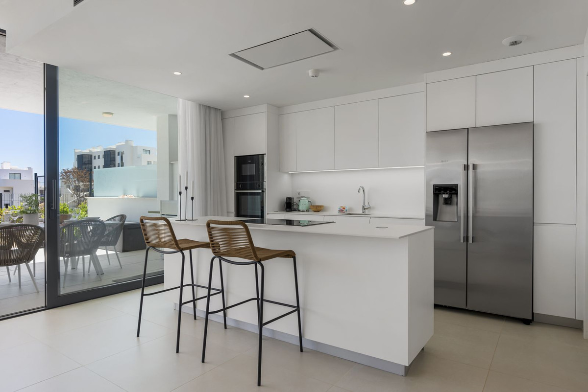 | Setting: Suburban, Close To Port, Close To Shops, Close To Sea, Close To Town, Close To Schools, Urbanisation Orientation: South Condition: Excellent Pool: Communal Climate Control: Air Conditioning, U/F/H Bathrooms Views: Sea, Panoramic, Pool Features: Covered Terrace, Lift, Fitted Wardrobes, Near Transport, Private Terrace, WiFi, Paddle Tennis, Storage Room, Ensuite Bathroom, Access for people with reduced mobility, Double Glazing, Fiber Optic Furniture: Fully Furnished Kitchen: Fully Fitted Garden: Communal, Private, Landscaped, Easy Maintenance Security: Gated Complex, Electric Blinds, Entry Phone, 24 Hour Security, Safe Parking: Underground, Communal Utilities: Electricity Category: Distressed, Investment, Luxury, Contemporary |