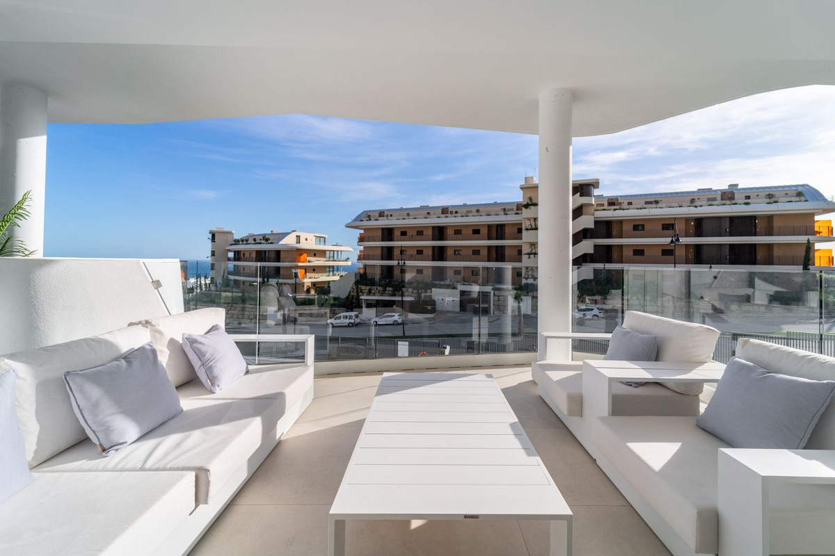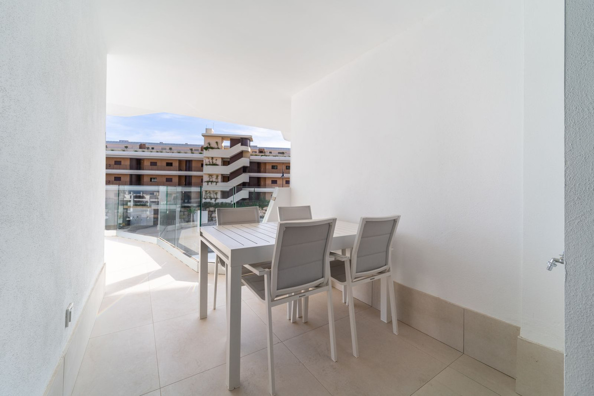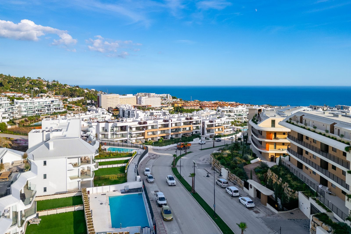 Appartement op de middelste verdieping, Fuengirola, Costa del Sol. 3 slaapkamers, 2 badkamers, bebouwd 92 m², terras 25 m². Omgeving: Verstedelijking. Oriëntatie: Zuid, Zuidwest. Staat: Uitstekend, Nieuwbouw. Zwembad: Gemeenschappelijk. Klimaatbeheersing: Airconditioning. Uitzicht: Zee, Tuin, Zwembad, Stedelijk, Straat. Kenmerken: Overdekt terras, Lift, Inbouwkasten, Privéterras, Berging, Ensuite badkamer, Toegang voor mensen met beperkte mobiliteit, Dubbele beglazing, Domotica. Meubilair: Volledig gemeubileerd. Keuken: volledig ingericht. Tuin: Gemeenschappelijk. Beveiliging: Afgesloten complex, intercom, 24-uurs beveiliging. Parkeren: Ondergronds, meerdere. Nutsvoorzieningen: elektriciteit, drinkwater. Categorie: Luxe, Wederverkoop.
