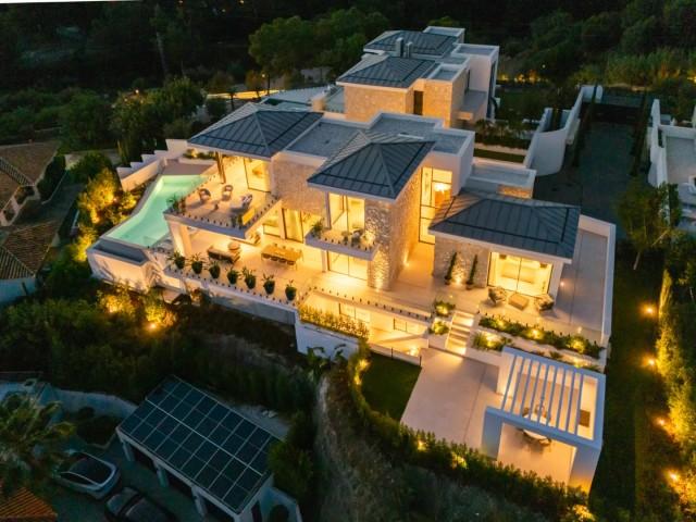 Deze uitzonderlijke moderne woning is gelegen in een exclusief, afgesloten complex op slechts enkele minuten van Marbella's meest prestigieuze bestemmingen. Gelegen tussen de glinsterende Middellandse Zee en de iconische berg La Concha, biedt de villa een adembenemend panoramisch uitzicht over de golfvallei, de natuurlijke landschappen en de kustlijn, en biedt volledige privacy en een diep gevoel van rust. De villa is elegant verdeeld over drie ruime verdiepingen met vijf prachtig ontworpen slaapkamers en vijf luxe badkamers, elk met nauwgezette aandacht voor detail ontworpen. De begane grond wordt gekenmerkt door lichte, open woonruimtes die moeiteloos overgaan in de designkeuken, de verfijnde eetkamer en de stijlvolle lounge. Grote ramen van vloer tot plafond zorgen voor veel natuurlijk licht en bieden toegang tot royale terrassen en een prachtig infinity pool van 51 m² dat het spectaculaire landschap omlijst en de naadloze binnen-buitenlevensstijl versterkt. De bovenste verdieping is gewijd aan de master suite, met een privéterras met een betoverend uitzicht, een inloopkleedruimte en een elegante, spa-achtige badkamer. Extra gastensuites zijn ontworpen met comfort, privacy en stijl in gedachten en bieden een serene oase voor familie en bezoekers. De onderste entertainmentverdieping biedt een verfijnde recreatieruimte, compleet met een bioscooplounge, fitnessruimte, wasruimte, diverse bergingen en een garage voor meerdere voertuigen. Elke zone is ontworpen om functionaliteit, elegantie en modern gemak te combineren. Deze magnifieke villa is ideaal gelegen op slechts enkele minuten van La Quinta Golf & Country Club, Los Naranjos Golf, Los Arqueros Golf en op korte rijafstand van de wereldberoemde Puerto Banús en Puente Romano. Omringd door weelderig groen, voorzieningen van wereldklasse en het beste van Marbella, vertegenwoordigt deze residentie een zeldzame mix van hedendaagse architectuur, natuurlijke schoonheid en een exclusieve levensstijl.