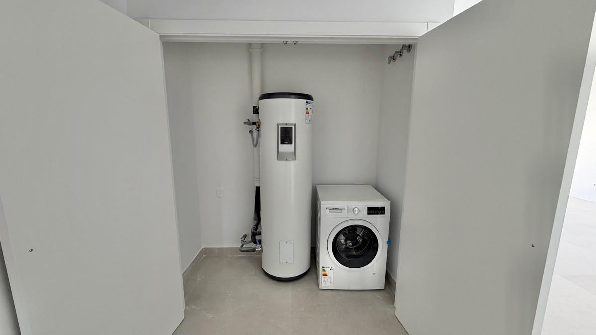 Welkom in dit uitzonderlijke penthouse met 3 slaapkamers in de moderne en zeer gewilde Urbanización Acqua Gardens, gelegen in het hart van Cancelada. Deze stijlvolle woning op de bovenste verdieping combineert modern design, ruime interieurs en een onovertroffen locatie – perfect voor wie op zoek is naar een verfijnde maar ontspannen mediterrane levensstijl. De woning biedt een goed ingerichte indeling met drie lichte tweepersoonsslaapkamers, waaronder een serene master suite met een eigen en-suite badkamer. Een tweede complete badkamer bedient de overige slaapkamers en gasten. Hoogwaardige afwerkingen, grote ramen en een open woon- en eetkamer creëren een uitnodigende sfeer vol natuurlijk licht. Een van de belangrijkste hoogtepunten is het ruime privéterras van 31 m² met gedeeltelijk uitzicht op zee en de bergen. Dit terras loopt naadloos over in de leefruimte en is ideaal om buiten te dineren, gasten te ontvangen of gewoon te ontspannen terwijl u geniet van het warme klimaat van de Costa del Sol. Extra gemakken zijn onder andere een ondergrondse parkeerplaats en een eigen berging, wat zorgt voor extra ruimte en gebruiksgemak. Bewoners van Acqua Gardens hebben toegang tot een fantastisch aanbod aan voorzieningen op het terrein, waaronder een buitenzwembad met zout water, een volledig uitgeruste fitnessruimte, een co-workingruimte, prachtig onderhouden gemeenschappelijke tuinen en een beveiligde toegangspoort voor volledige gemoedsrust. De locatie is werkelijk onovertroffen: op loopafstand van een breed scala aan voorzieningen, charmante cafés, winkels en het strand, dat op slechts 10 minuten loopafstand ligt. Voor wie graag de kust verkent, zijn zowel Marbella als Estepona binnen 10 minuten rijden te bereiken, met restaurants, winkels en recreatiemogelijkheden van wereldklasse direct voor de deur. Of u nu op zoek bent naar een permanente woning, een stijlvol vakantiehuis of een slimme investering: dit penthouse biedt u waar voor uw geld, luxe en een levensstijl in een van de meest opkomende gebieden van de Costa del Sol.