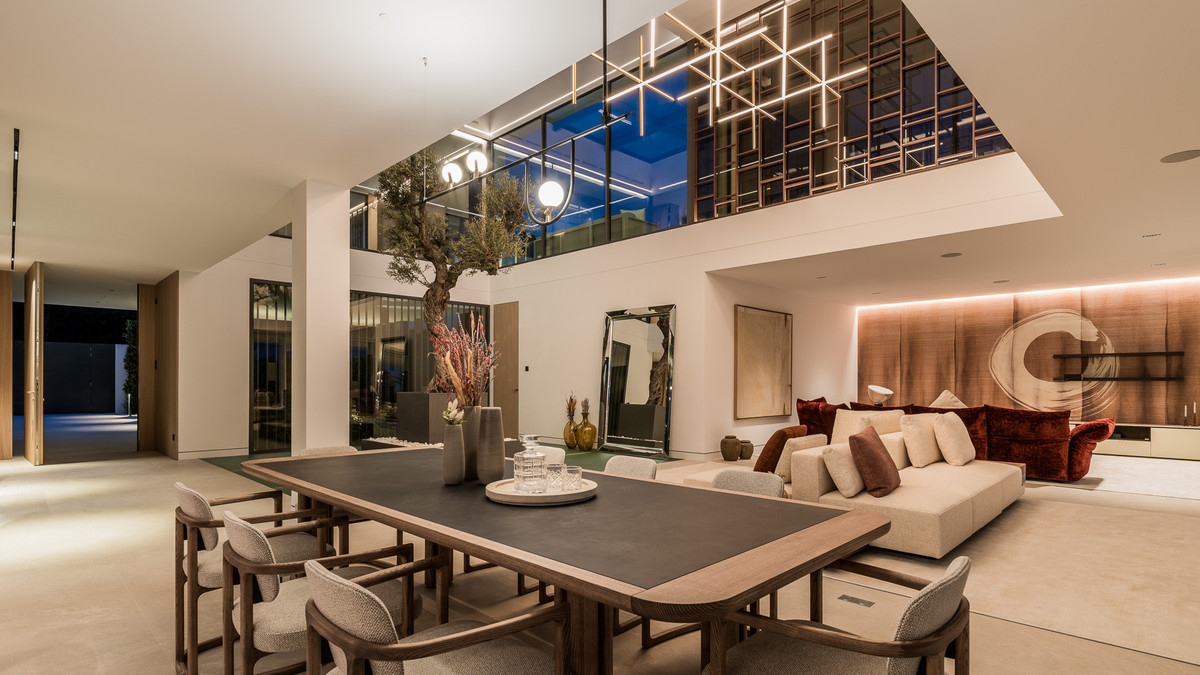 Deze opmerkelijke residentie is gelegen in het prestigieuze gebied van de Golden Mile en biedt een ongeëvenaarde locatie, op slechts 300 meter van het strand en de boulevard met een divers aanbod aan restaurants en winkels. Deze droomwoning is een ideale optie voor een luxueuze levensstijl en ligt bovendien gunstig gelegen nabij de eetgelegenheden in Puente Romano, waardoor alle stedelijke voorzieningen gemakkelijk bereikbaar zijn. Deze woning is een buitengewone kans voor wie op zoek is naar een exclusieve residentie op een toplocatie. Het interieur van dit prachtige pand omvat vijf slaapkamers en vijf en-suite badkamers, waardoor een ruime en verfijnde woning ontstaat, afgewerkt met uitzonderlijk hoogwaardige materialen. Deze residentie biedt royale leefruimtes binnen en buiten, perfect om het hele jaar door te genieten van het uitzonderlijke klimaat van de regio. Op het terrein bevinden zich twee privézwembaden van serene schoonheid en een weelderige tuin met een betoverend uitzicht op zee. Op de begane grond bevindt zich een praktische slaapkamer met een eigen badkamer, grenzend aan een ruime woon-eetkamer die naadloos overgaat in de volledig uitgeruste keuken en terrassen, vanwaar u toegang heeft tot de tuin met zwembad. De bovenverdieping is volledig gewijd aan ontspanning en beschikt over drie slaapkamers, elk met een eigen terras en panoramisch uitzicht. De hoofdslaapkamer heeft een ruime kleedkamer. In het souterrain vindt u een grote multifunctionele ruimte, een wasruimte, een gastentoilet, een slaapkamer met een eigen badkamer, een bioscoopkamer, een bar met een receptiegedeelte en een garage met plaats voor zes auto's. Het solarium van 100 vierkante meter omvat een eethoek in de buitenlucht, een zwembad met panoramisch uitzicht op zee en een ontspanningsruimte om te genieten van het ongeëvenaarde uitzicht op de zee en het omringende landschap. Een lift verbindt alle verdiepingen van de woning naadloos met elkaar. Deze villa is onmiskenbaar uniek en onderscheidt zich niet alleen door de toplocatie in een van de meest gewilde wijken van Marbella, maar ook door de uitzonderlijke afwerking, hoogwaardige materialen en verfijnde inrichting – waardoor het de perfecte keuze is voor wie op zoek is naar een luxe levensstijl in het prachtige Marbella.