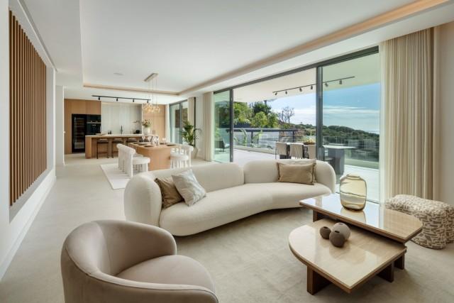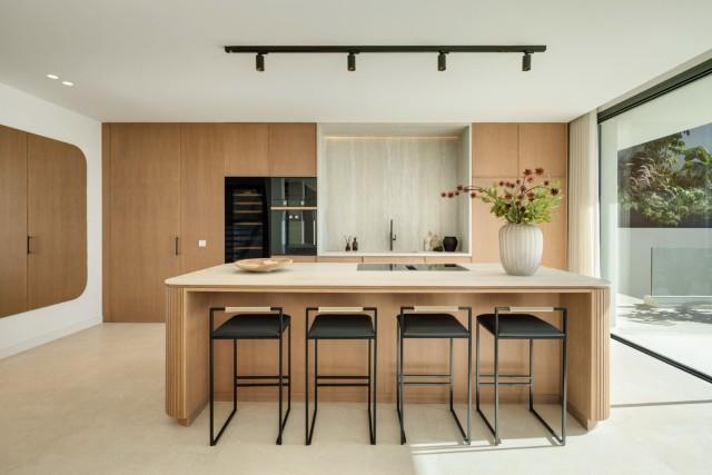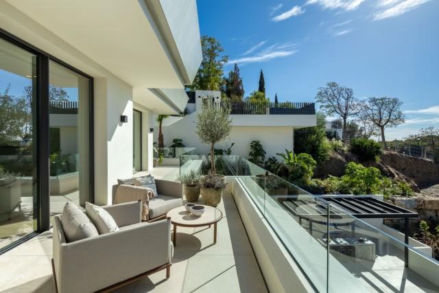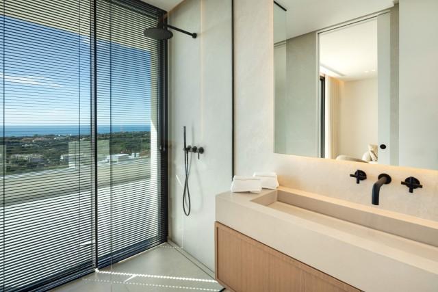 Deze uitzonderlijke, moderne villa is gelegen in een rustige en beveiligde woonwijk in Marbella Oost en biedt een uitstekende combinatie van moderne architectuur, elegante interieurs en een panoramisch uitzicht op de Middellandse Zee. De woning is ontworpen over drie prachtig ingedeelde verdiepingen en biedt 454 m² verfijnde woonruimte, aangevuld met een indrukwekkend terras van 621 m² waar u heerlijk kunt genieten van de zon, het hele jaar door. De villa beschikt over vijf ruime slaapkamers, elk met een eigen badkamer, wat maximale privacy en comfort garandeert voor zowel bewoners als gasten. De indeling is zorgvuldig ontworpen om optimaal te profiteren van natuurlijk licht en een open uitzicht, met een zeer gewenste ligging op het zuiden. Vanaf het moment dat u de villa binnenstapt, straalt deze een verfijnde maar gastvrije sfeer uit, versterkt door hoogwaardige afwerkingen, elegante natuurlijke materialen, eikenhouten vloeren en grootformaat porseleinen tegels. De open woon- en eetkamer sluiten naadloos aan op de terrassen, waardoor ideale ruimtes ontstaan om te entertainen, te ontspannen en te genieten van het leven aan zee. De volledig uitgeruste, moderne keuken is voorzien van hoogwaardige apparatuur en verfijnde kasten, waarbij design en functionaliteit hand in hand gaan. Een aparte tv- en entertainmentruimte biedt extra ontspanningsruimte, perfect voor gezinsleven of het ontvangen van gasten. Buitenleven is een belangrijk pluspunt van deze woning. Ruime terrassen bieden meerdere lounge- en eetgedeeltes, ideaal om te genieten van het uitzonderlijke klimaat van Marbella, terwijl het privézwembad een prachtig uitzicht op zee biedt. De buitenruimtes bieden privacy, rust en een perfecte setting voor zowel ontspanning overdag als gezellige avonden. De villa is gelegen in een beveiligde, afgesloten gemeenschap met moderne bewakingssystemen, wat zorgt voor optimale privacy en gemoedsrust. De woning wordt volledig gemeubileerd aangeboden in een eigentijdse en elegante stijl, zodat u er direct van kunt genieten. Een privégarage completeert de woning en biedt voldoende parkeerruimte. Op korte rijafstand van stranden, internationale scholen, golfbanen, winkels en restaurants, biedt deze villa een uitstekende kans om een instapklare, moderne woning te kopen in een van de meest gewilde woonwijken van Marbella Oost. Deze woning biedt een ideale balans tussen privacy, modern comfort en de nabijheid van alle voorzieningen, waardoor het perfect geschikt is als permanente woning, vakantiehuis of langetermijninvestering aan de Costa del Sol. Meubelpakket apart verkrijgbaar.