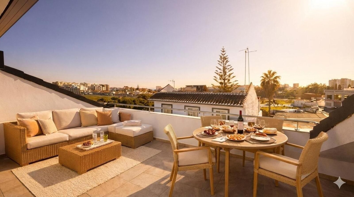 Penthouse in La Calerita, Fuengirola – 3 Bedrooms and 3 Bathrooms DOES NOT INCLUDE GARAGE AND STORAGE ROOM Discover this exclusive penthouse, designed with top-quality finishes to provide maximum comfort. Enjoy excellent acoustic insulation in walls and ceilings, underfloor heating in the main bathroom, and an efficient aerothermal system. In addition, the building holds an A energy efficiency certificate, ensuring sustainability and energy savings. Fully fitted kitchens, window shutters, and pre-installation for electric vehicle charging in accordance with current regulations. Strategic Location in Fuengirola – La Calerita Area The Real Building is located in a privileged setting, with quick access to all services and key points of interest: ✔ Less than 2 minutes from the motorway, ensuring easy connection to the entire Costa del Sol. ✔ Just a 3-minute walk from the Fairground, the hub of events and activities. ✔ Schools and secondary schools within walking distance, providing a convenient and accessible educational environment. ✔ La Loma Park nearby, ideal for walks and leisure time. ✔ Beach less than 10 minutes away, allowing you to enjoy the sea whenever you wish. Fuengirola is an ideal location for those seeking a family-friendly and peaceful environment, while still enjoying a wide range of leisure, sports, and dining options on the heart of the Costa del Sol. AI-generated decorative images (*) Prices do not include VAT (10%). Subject to change without prior notice.