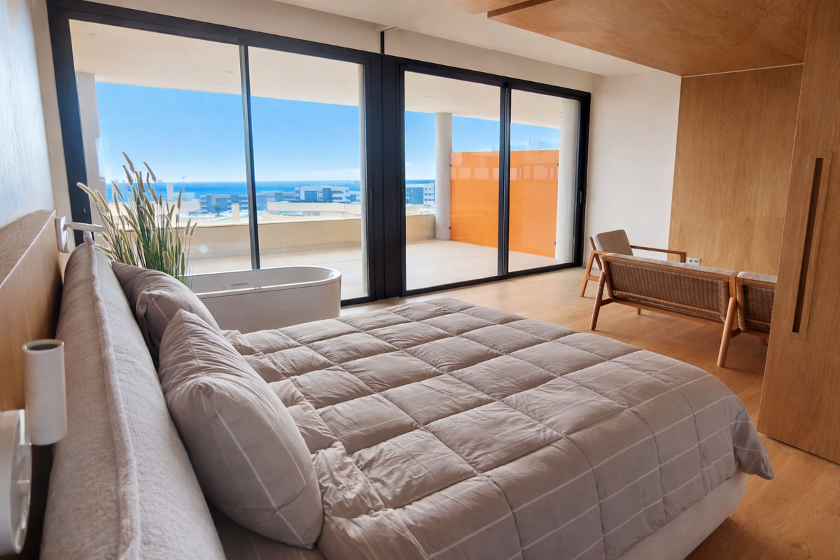 Brand new property in a modern residential complex! This elegant apartment on the fourthfloor of South Residences – Leiro combines contemporary design, comfort, and a primelocation between the sea and the mountains. With a total surface area of 117 m², the property offers a smart layout featuring a brightliving-dining room with an open-plan kitchen, two spacious bedrooms with built-inwardrobes, two full bathrooms, and a generous private terrace with partial sea views andstunning natural surroundings. Large sliding doors seamlessly connect the interior with the exterior, bringing abundantnatural light throughout the day and creating a wonderful sense of space. High-qualityfinishes such as porcelain flooring, designer carpentry, and sustainable materials likenatural stone and wood add both sophistication and warmth. The price includes an underground parking space and a private storage room, providingextra convenience and storage capacity. As an owner, you’ll enjoy exclusive access to the residential amenities: swimming poolsfor adults and children, outdoor gym, pedestrian paths, coworking area, open-air cinema,pet park, and barbecue and picnic spaces. You’ll also benefit from privileged access to theservices of the prestigious Higuerón Hotel Curio Collection, including spa, restaurants,beach club, and concierge service. The location is unbeatable: less than 5 minutes from the beach and natural areas, andonly 15 minutes by car from Málaga International Airport. An ideal choice as a permanent residence.