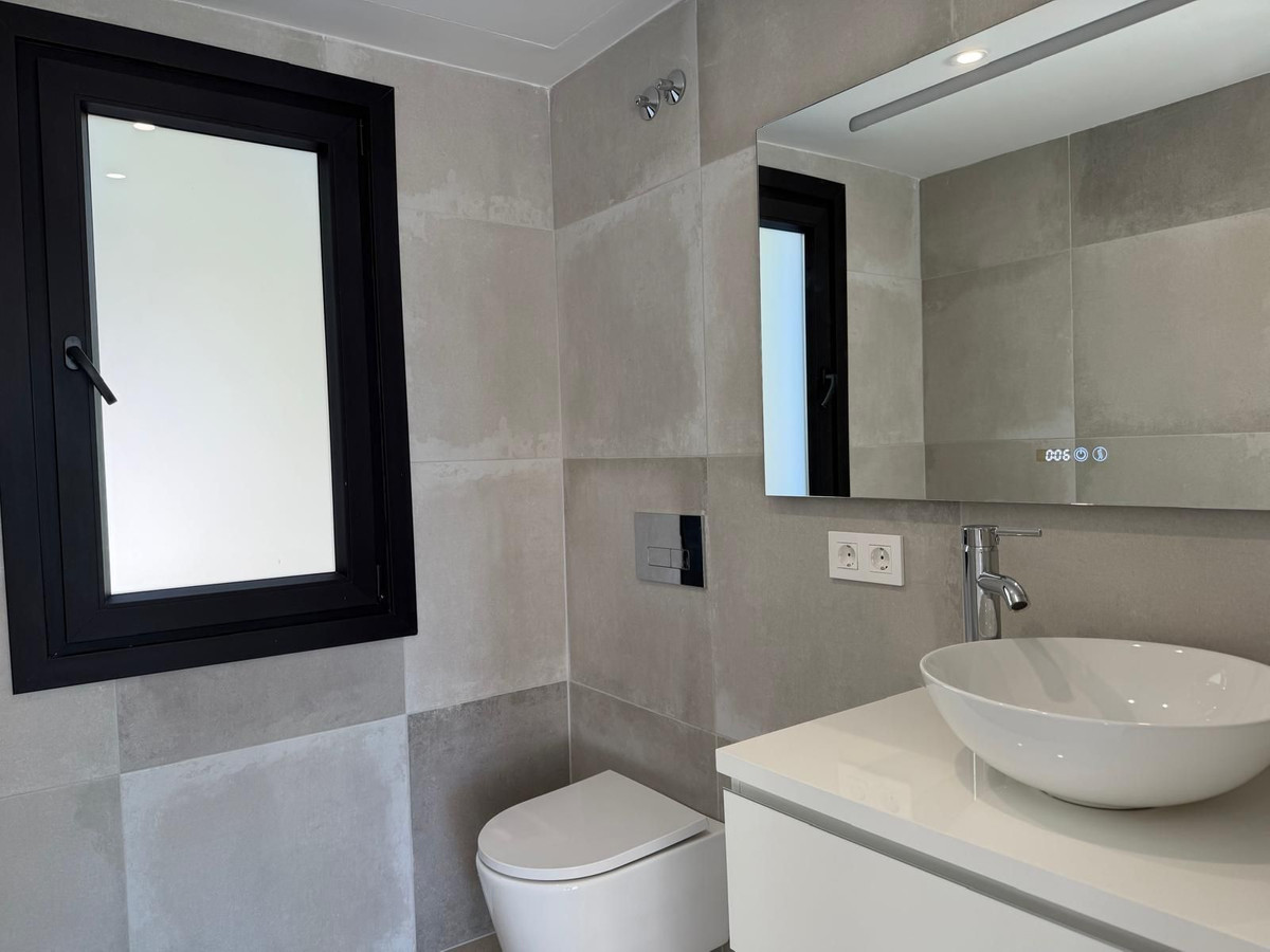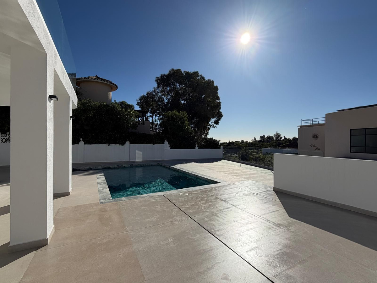 This elegant villa offers a perfect blend of comfort, space, and modern design, ideal for those seeking a refined yet relaxed lifestyle in a highly desirable neighbourhood. Located close to the international school, it’s perfect for families looking for convenience, safety, and accessibility. Filled with natural light, the villa boasts open-plan living areas with large windows and glass doors, seamlessly connecting indoor and outdoor spaces and enjoys open views with pleasant sea views. The modern open-plan kitchen features a large central island with an integrated cooking field, ideal for both everyday living and entertaining guests. The property includes three spacious bedrooms, all en-suite, and a total of five bathrooms, ensuring comfort and privacy for all. Every room is equipped with independent air conditioning, providing year-round climate control. Outdoor living is exceptional, with a private swimming pool, multiple patios and terraces, and comfortable outdoor lounge areas—perfect for relaxation, social gatherings, or enjoying the peaceful surroundings. Enjoy open views with some sea glimpses from the villa, adding to its serene and exclusive ambiance. Additional features include a private garage and a large hidden laundry room tucked behind the kitchen, combining practicality with a clean, elegant interior design. This villa is not just a home—it’s a lifestyle choice, offering luxury, privacy, and convenience in a safe and friendly neighbourhood close to essential amenities, schools, and local attractions.