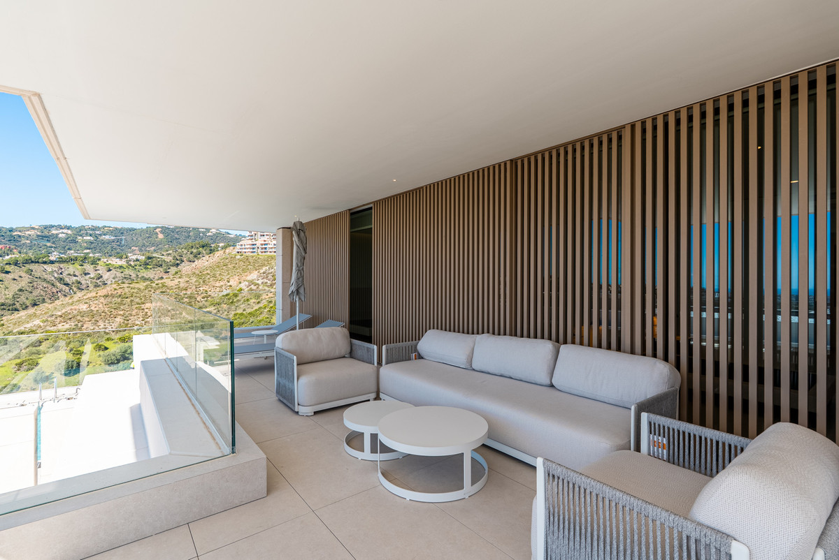 Located within the prestigious Real de La Quinta resort, surrounded by nature and only minutes from Marbella and Puerto Banus, Palmitos is a luxury residential project designed by Villarroel Torrico. With only 2 blocks and 40 homes, Palmitos stands out for its exclusivity, south orientation and panoramic views of the sea, the mountains and the golf course. The properties combine space, elegance and quality, offering generous interior areas, large terraces perfect for year-round enjoyment, and access to beautifully designed communal areas. The layouts are conceived to maximize natural light and create seamless indoor-outdoor integration. Highlights Spacious living and dining areas with open-plan kitchens Large covered terraces with panoramic views Master bedrooms with en suite bathrooms High-quality finishes and premium appliances Modern design with floor-to-ceiling windows and glass railings Climate comfort with Daikin hot and cold air conditioning, underfloor heating in bathrooms, and optional water-based underfloor heating throughout Full home automation system with remote access Top-quality aluminium carpentry with double glazing and integrated blinds Resort amenities at Real de La Quinta Golf course and academy Navigable lake with water sports Tennis and paddle club Social club with restaurant, gym and spa 24-hour security Protected natural environment with hiking trails Palmitos represents a unique opportunity to live in a privileged natural setting with all the services of a luxury resort and the comfort of a contemporary design created for modern Mediterranean living.