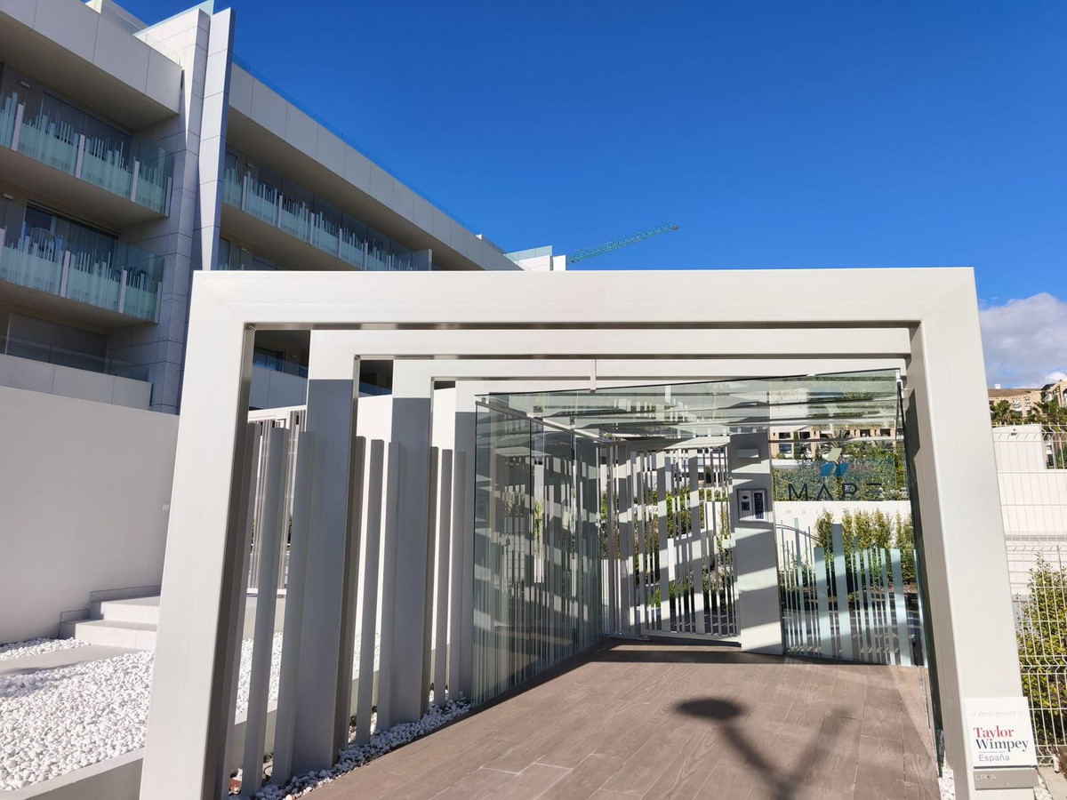 Setting: Town, Commercial Area, Beachside, Close To Golf, Close To Port, Close To Shops, Close To Schools, Close To Marina Orientation: West Condition: New Construction Pool: Communal Climate Control: Air Conditioning, Hot A/C Views: Panoramic Features: Covered Terrace, Lift, Near Transport, Private Terrace, WiFi, Storage Room, Ensuite Bathroom, Access for people with reduced mobility, Marble Flooring, Double Glazing Furniture: Optional Kitchen: Fully Fitted Garden: Communal Security: Gated Complex, Entry Phone Parking: Underground Category: Holiday Homes, Investment, Resale