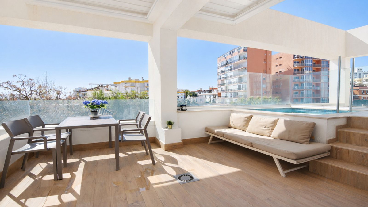 Exclusief hoekpenthouse, gebouwd in 2021, gelegen in het hart van Torremolinos, in een modern gebouw met slechts enkele buren. Het biedt privacy en rust, terwijl alle voorzieningen op loopafstand liggen. De woning biedt 74 m² bruikbare ruimte en 93 m² bebouwde oppervlakte, met een zeer functionele indeling. Het beschikt over twee slaapkamers, twee badkamers en een lichte open keuken die aansluit op de woonkamer, waardoor een comfortabele en eigentijdse leefruimte ontstaat. Een van de hoogtepunten van de woning is het privéterras van 23 m², ideaal om het hele jaar door van het mediterrane klimaat te genieten. Vanaf het terras heeft u een prachtig uitzicht op zee en kunt u dankzij de westelijke ligging genieten van adembenemende zonsondergangen. Het terras beschikt tevens over een klein privézwembadje, een zeldzame en zeer gewilde voorziening die dit penthouse werkelijk uniek maakt. Als hoekpenthouse profiteert de woning van extra lichtinval, privacy en een groter gevoel van ruimte. Extra voorzieningen zoals elektrische rolluiken en fotovoltaïsche zonnepanelen zorgen voor extra comfort en een betere energie-efficiëntie. Het pand beschikt ook over een vergunning voor toeristische verhuur, waardoor het een uitstekende kans biedt als hoofdverblijf, vakantiehuis of lucratieve investering voor kortetermijnverhuur in een van de meest gewilde gebieden van de Costa del Sol. Ideaal gelegen op loopafstand van winkels, restaurants en openbaar vervoer, en op slechts enkele minuten van het strand. Een modern en uniek pand met uitstekend investeringspotentieel in het centrum van Torremolinos.