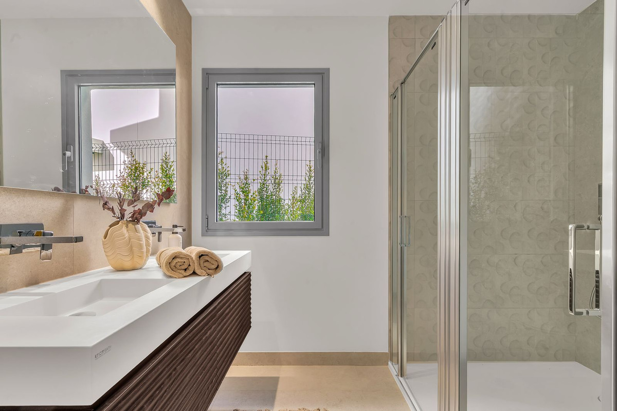 Een zeldzame, verhoogde woning met 4 slaapkamers op de begane grond in Santa Clara Homes, die een villa-achtige woonervaring biedt met royale, privé buitenruimtes in een veilige, luxe woonwijk in Marbella Oost. Met een totale bebouwde oppervlakte van 239 m² en meer dan 250 m² aan privé-buitenruimte combineert dit uitzonderlijke pand het comfort en gemak van een appartement met de privacy en ruimte van een vrijstaande villa. Dankzij de ligging op het zuiden geniet de woning de hele dag van overvloedig natuurlijk licht. De ruime open woon- en eetkamer loopt naadloos over in een grote overdekte veranda, een privétuin en een privézwembad, waardoor een ideale omgeving ontstaat voor buitenleven, gezelligheid en ontspanning het hele jaar door. De woning beschikt over vier ruime slaapkamers en vier badkamers, wat flexibiliteit biedt voor gezinnen, gasten of een thuiskantoor. Een belangrijk pluspunt is de grote kelder van circa 64 m², die uitstekende mogelijkheden biedt voor een thuisbioscoop, fitnessruimte, wijnkelder, extra slaapkamers of ruime opslagruimte. Extra functies zijn onder andere: Vloerverwarming in het hele huis Afgesloten luxe woonwijk Spa, fitnessruimte en diverse gemeenschappelijke zwembaden. Prachtig aangelegde tuinen Twee eigen parkeerplaatsen in de ondergrondse garage. Een eigen opslagruimte Sleutel klaar – direct te betrekken Dit is een zeldzame kans om een woning op het zuiden te kopen met een privézwembad en -tuin in een van de meest gewilde woonwijken van Marbella, ideaal als hoofdverblijf, tweede huis of luxe investering.