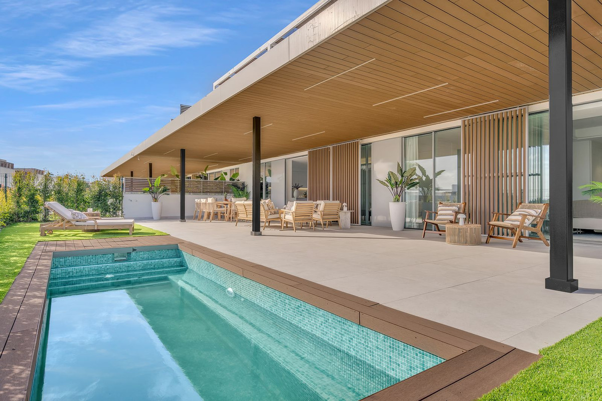 | Instelling: dicht bij golf, dicht bij winkels, dicht bij zee, dicht bij stad, urbanisatie Orientatie: Zuid Staat: Uitstekend, Nieuwbouw Zwembad: gemeenschappelijk, privé, binnen, verwarmd, kinderzwembad Klimaatregeling: airconditioning, warme airconditioning, koude airconditioning, U / F-verwarming Uitzicht: tuin, zwembad Kenmerken: Overdekt terras, Lift, Inbouwkasten, Privéterras, Fitnessruimte, Sauna, Berging, Bijkeuken, Badkamer en suite, Marmeren vloeren, Dubbele beglazing, Kelder Meubels: volledig gemeubileerd Keuken: volledig ingericht Tuin: gemeenschappelijk, privé, aangelegd, eenvoudig onderhoud Beveiliging: Gated Complex, Entry Phone, Safe Parkeren: ondergronds, garage, meer dan één Categorie: Golf, Vakantiehuizen, Luxe, Hedendaags |