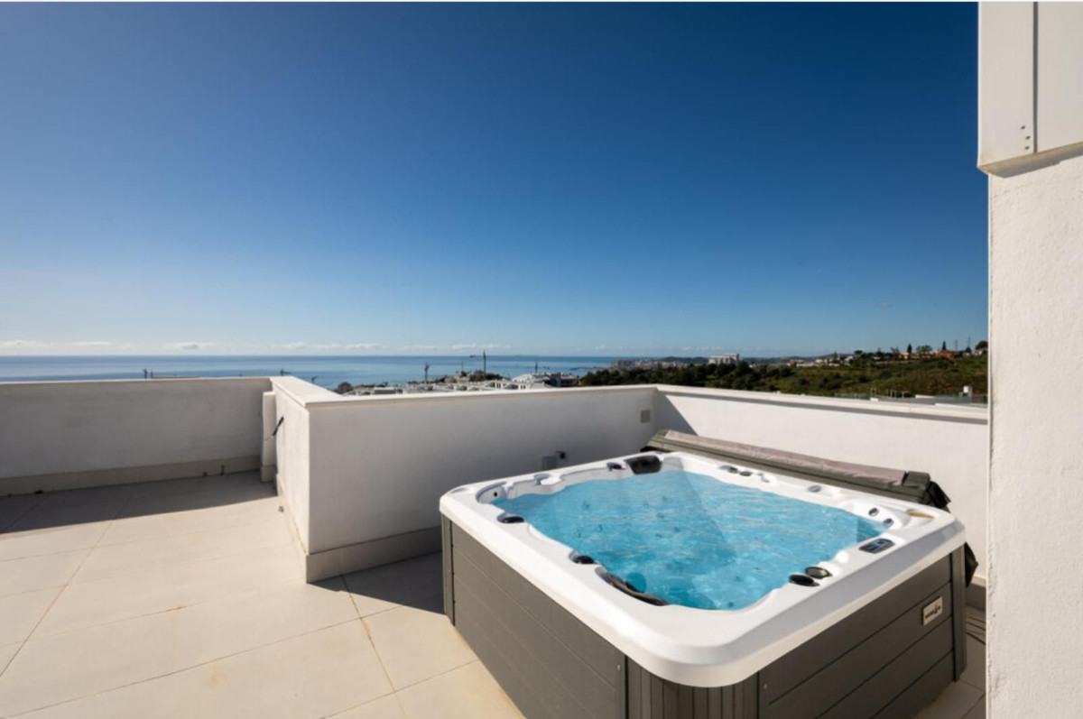 Ontdek de luxe van het mediterrane leven in dit opvallende penthouse in Reserva del Higuerón, ideaal gelegen op slechts 400 meter lopen van de stranden van Fuengirola. Deze prachtig ontworpen woning met twee slaapkamers combineert een eigentijdse stijl met ultiem comfort en biedt een panoramisch uitzicht op zee en een uitzonderlijk gevoel van ruimte. Het privé dakterras met jacuzzi is de perfecte plek om te ontspannen, te entertainen of simpelweg te genieten van het uitzicht van zonsopgang tot zonsondergang. Binnen kenmerkt het appartement zich door een lichte, open indeling, waarbij de woon- en keukenruimte naadloos in elkaar overlopen en versterkt worden door grote ramen van vloer tot plafond die de woning vullen met natuurlijk licht. Twee privé parkeerplaatsen en een berging zijn eveneens inbegrepen voor extra gemak. De woning maakt deel uit van een beveiligde, afgesloten woongemeenschap met 24-uursbewaking, wat zorgt voor een rustige en privé woonomgeving. Aangelegde tuinen en groene zones creëren een vredige, resortachtige sfeer in het hele complex. Bewoners hebben toegang tot een breed scala aan hoogwaardige voorzieningen, waaronder een volledig uitgeruste fitnessruimte, spafaciliteiten, stijlvolle gemeenschappelijke lounges en coworkingruimtes. Buiten zijn er zwembaden, zonneterrassen en prachtig onderhouden tuinen, allemaal ontworpen om optimaal te profiteren van het uitzonderlijke klimaat van de Costa del Sol, samen met wandel- en fietspaden voor een actieve levensstijl. Het penthouse is perfect gelegen, vlakbij enkele van de mooiste stranden van de Costa del Sol en op korte afstand van restaurants, winkels, scholen en andere voorzieningen. Dankzij de directe toegang tot de snelweg AP-7 is de luchthaven van Málaga in slechts 15 minuten rijden te bereiken, terwijl zowel de stad Málaga als Marbella in ongeveer 25 minuten te bereiken zijn. Deze woning, gelegen in het levendige en gewilde Fuengirola, biedt een uitstekende combinatie van modern design, een toplocatie en een ontspannen leven aan de kust – ideaal als permanente woning, vakantiehuis of slimme investeringsmogelijkheid.