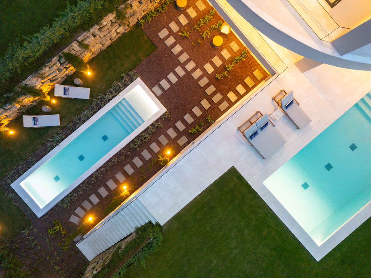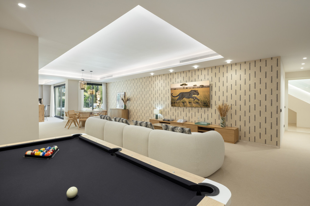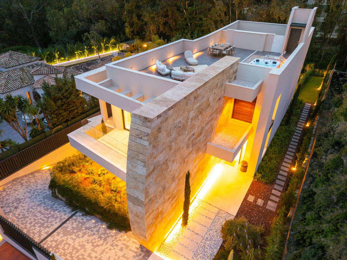 Set in the exclusive enclave of La Cerquilla, this exceptional brand-new villa for sale is a masterclass in contemporary luxury, offering five spacious bedrooms and seven beautifully appointed bathrooms across four meticulously designed levels. A striking double-height entrance creates an immediate sense of grandeur, flooding the home with natural light and setting the tone for the elegant interiors beyond. The main living area features a stylish fireplace and flows seamlessly into an open-plan kitchen, designed for both everyday living and sophisticated entertaining. The property is further enhanced by a state-of-the-art home automation (domótica) system and an advanced automatic air renewal system, ensuring optimal comfort, efficiency, and air quality throughout. On this level, a guest bedroom with en-suite enjoys tranquil garden views, providing comfort and privacy. The first floor is dedicated to refined living, highlighted by an impressive master suite complete with a stunning walk-in wardrobe and a luxurious en-suite bathroom. An additional guest bedroom with en-suite is also located on this level, maintaining the home’s high standard of comfort throughout. Ascending to the rooftop solarium, you’ll discover a true lifestyle haven. Complete with a jacuzzi and lounge area, this space offers breathtaking views of La Concha mountain perfect for sunset cocktails and relaxed evenings under the Mediterranean sky. The lower level is designed for leisure and functionality, featuring a fully equipped gym, a bespoke bodega, a second living room, and an additional kitchen with bar area. This level also includes two en-suite guest bedrooms, both with direct access to a secondary pool area and landscaped gardens, creating a private retreat for guests. A three-car garage and guest toilet complete this floor. Blending cutting-edge design with luxurious amenities, this villa offers an unparalleled living experience in one of Marbella’s most sought-after locations. The property also includes a lift providing seamless access to all floors, enhancing both convenience and accessibility. La Cerquilla is a quiet residential enclave known for its low-density layout and a mix of contemporary villas and Mediterranean-style homes set on large private plots. The environment is calm and established, with a strong sense of privacy while remaining close to everyday services. Nearby golf courses such as Los Naranjos Golf Club and Las Brisas Golf Club are a key attraction, offering well-maintained facilities and an active sporting lifestyle. Dining and social life are easily accessible, with restaurants such as Breathe and Mosh Fun Kitchen providing a range of contemporary cuisine and relaxed social settings. Everyday convenience is supported by nearby commercial areas like Centro Plaza, which includes shops, cafés, and essential services. The beach is only a short drive away, allowing quick access to the coast while maintaining the calm residential character of the area. Families benefit from proximity to established international education options such as Aloha College, and the surrounding road network provides straightforward connections to nearby towns and coastal destinations. This villa stands out for its scale, layout, and versatility, offering a modern living experience in a well established residential environment defined by privacy, comfort, and accessibility. The furniture is sold separately at 200.000Euros,